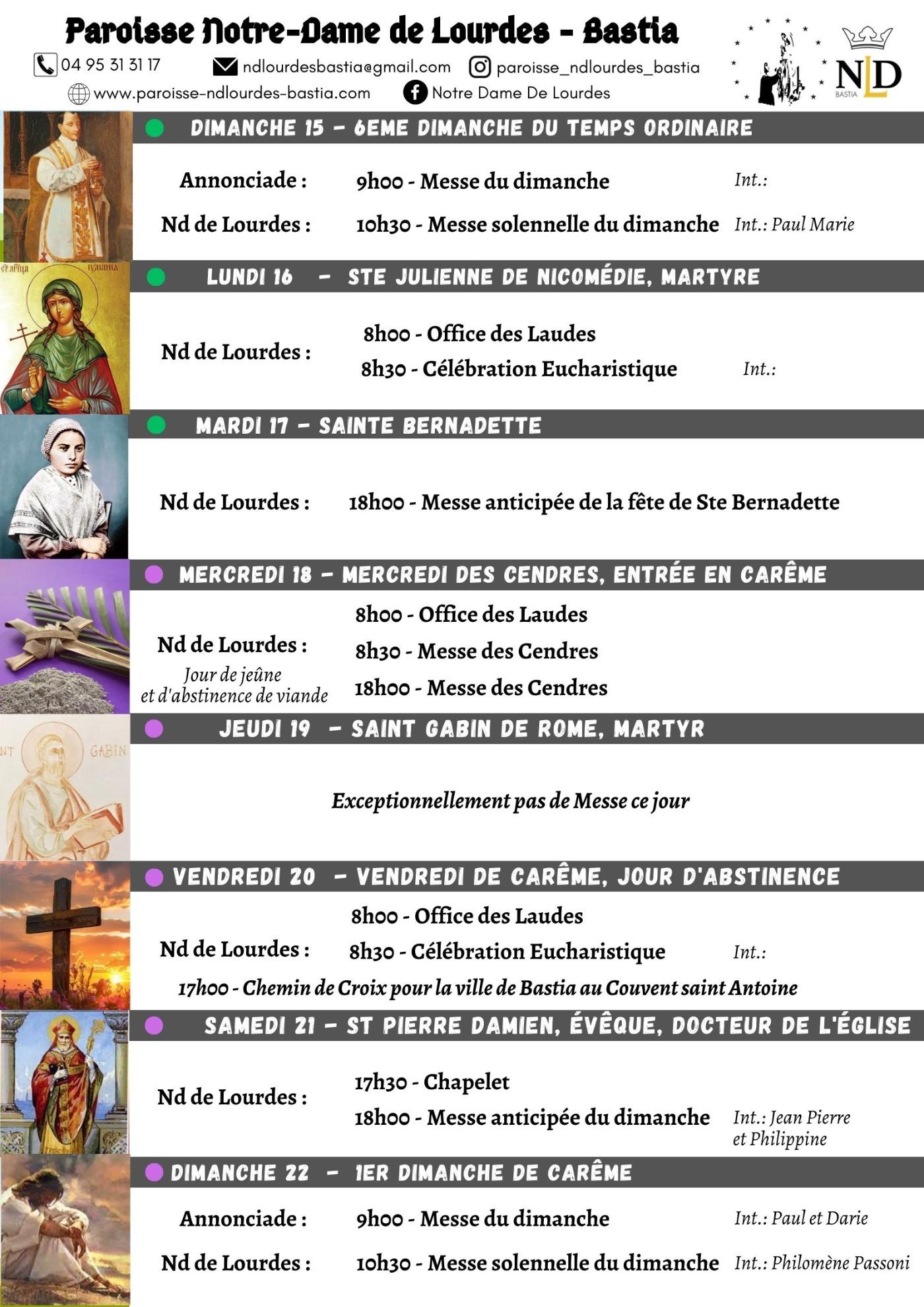 Soyez les bienvenus sur le site de l'unité paroissiale Notre Dame de Lourdes de Bastia (Diocèse d'Ajaccio pour la Corse). Cette belle unité vit son expérience de foi dans la région du nord de la ville de Bastia, en Haute Corse, englobant une réalité urbaine ouverte sur l'accueil de tous ceux qui cherchent le Christ en développant l'esprit de Lourdes où la Vierge Marie est apparue à la jeune Bernadette Soubirous.